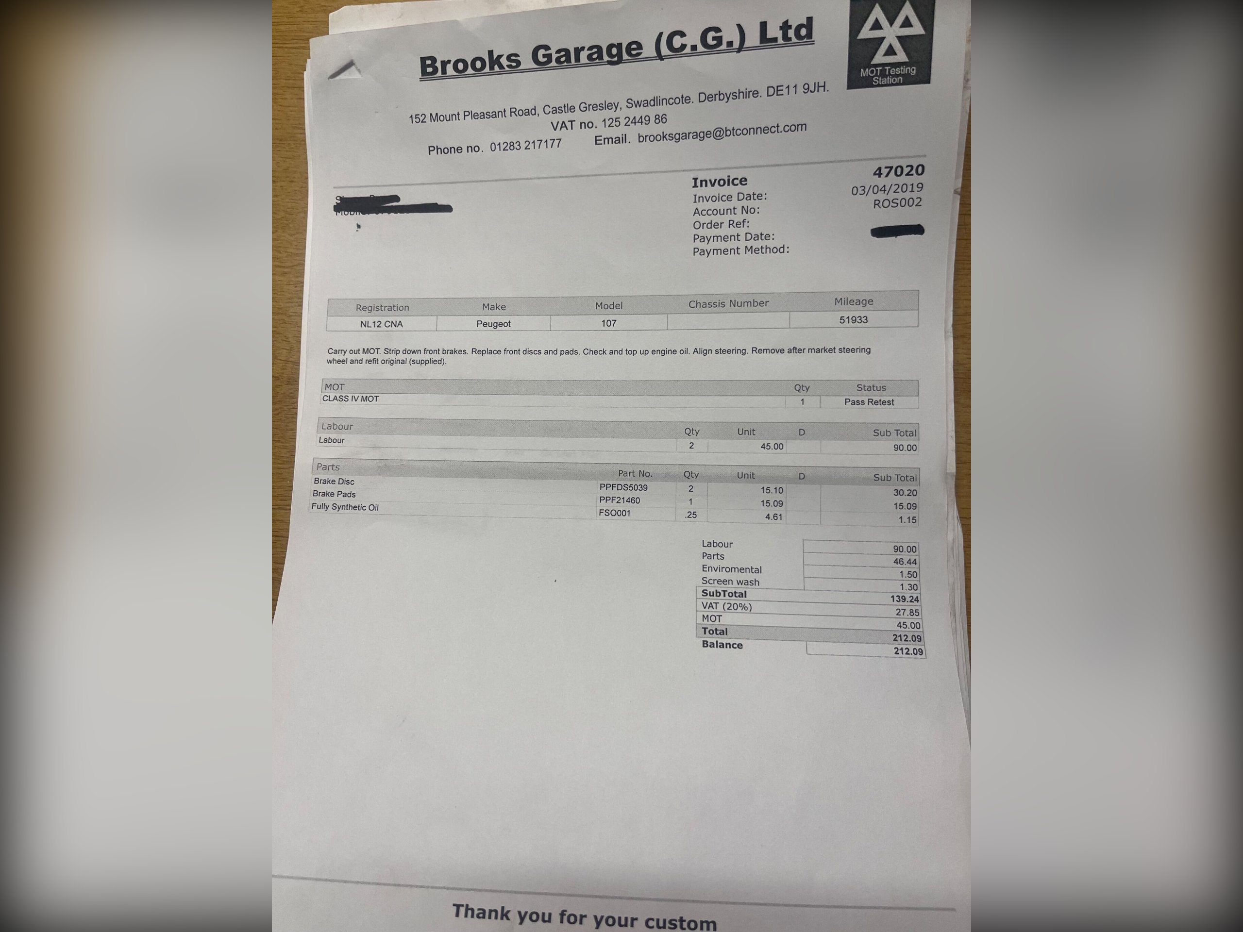 This 2012 Peugeot 107 Urban, new disc and pad just fitted, mot December 2026